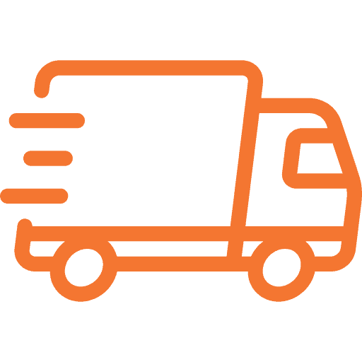 Orange outline icon of a delivery truck in motion, symbolizing fast shipping or logistics.